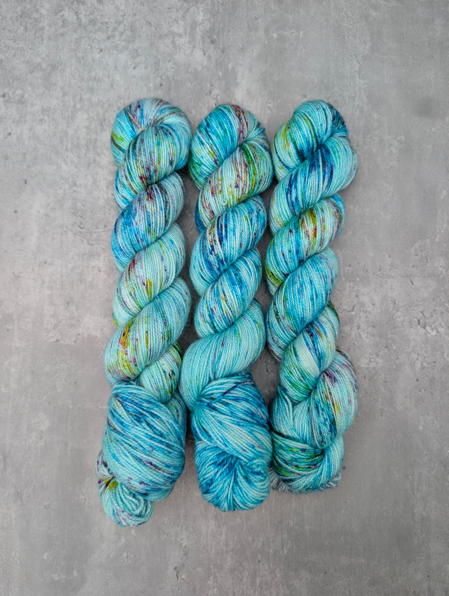 This yarn shows a little attitude! A soft aqua background gets a fresh infusion of lively speckles in yellow, pink, purple, and turquoise. Sure to turn heads and make an impression, this sassy colorway is a perfect choice for a variety of projects!
