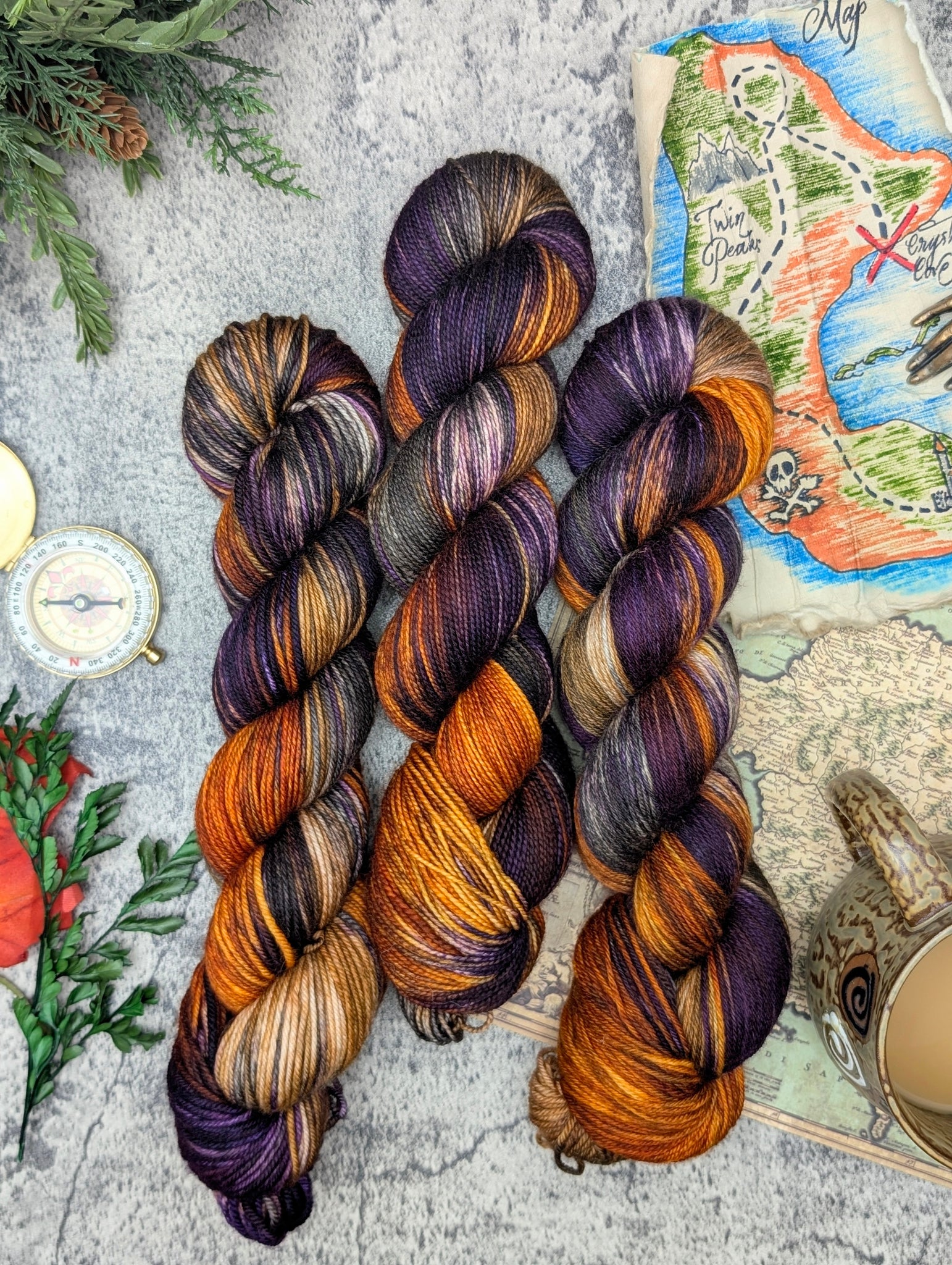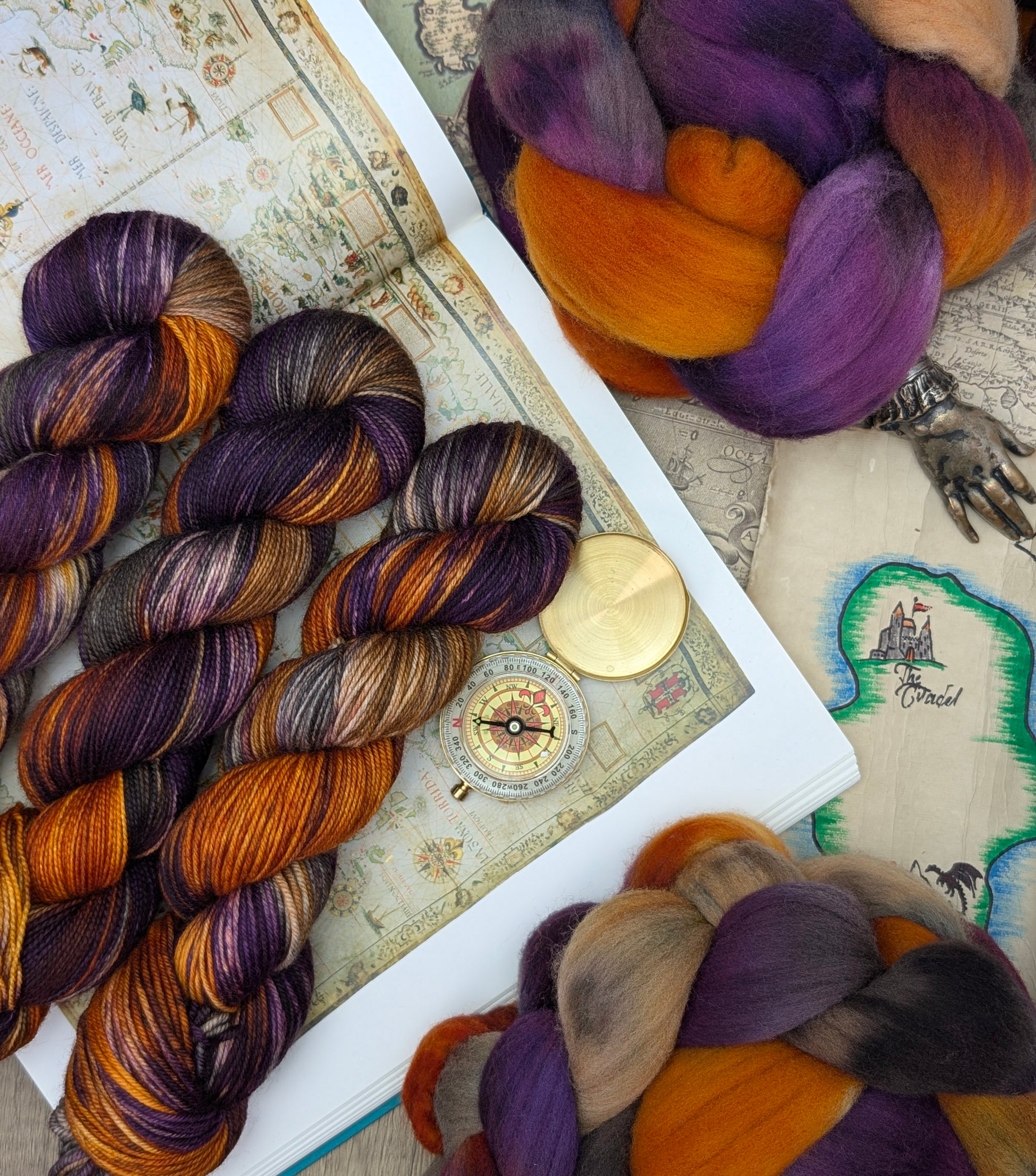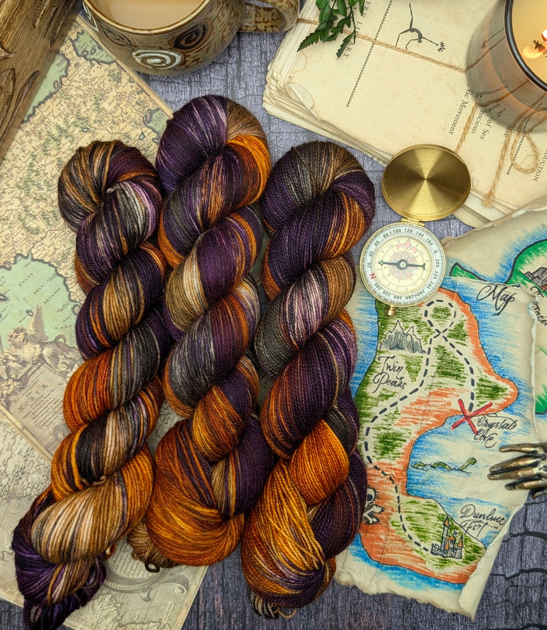 Mapmaker blends glowing pumpkin, rich shadowed plum, warm sandstone, and moody charcoal, layered together like ink and parchment coming alive. It’s a rich, adventurous palette that feels like charting unknown lands by firelight, capturing the spirit of exploration, creativity, and discovery.