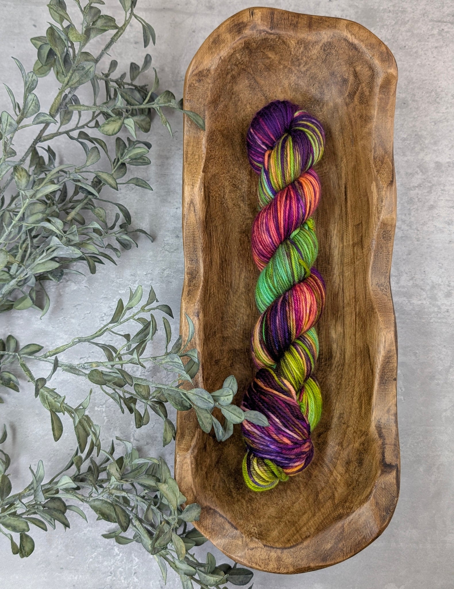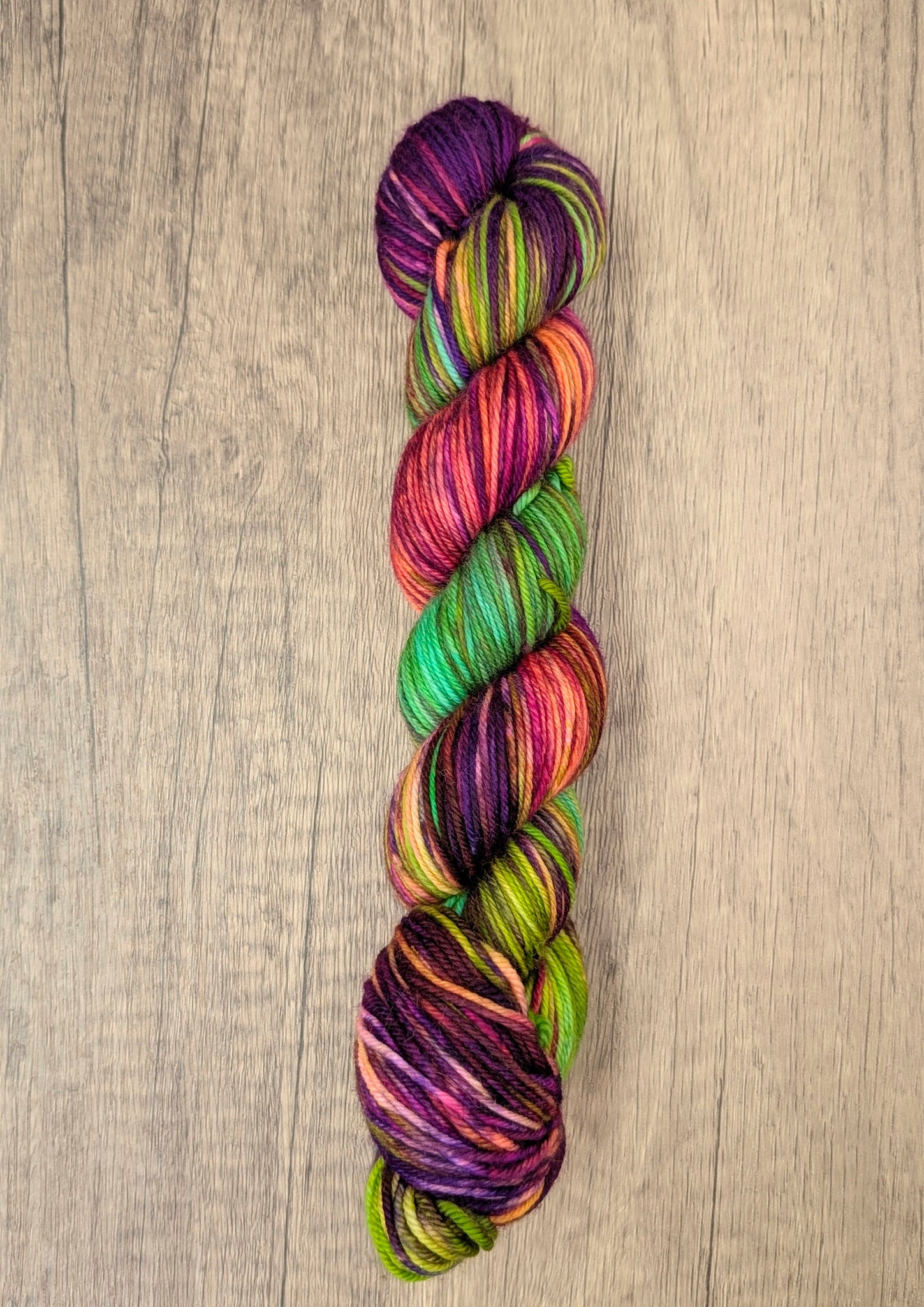 I use professional quality acid dyes to ensure vivid colors that will last. No two skeins are identical: if you need more than one skein for your project, be sure to alternate rows to ensure variegation. Please note that each skein is a unique work of art and may not exactly match the photos, but will be very close. I may reskein your yarn before shipping to avoid tangles if necessary.